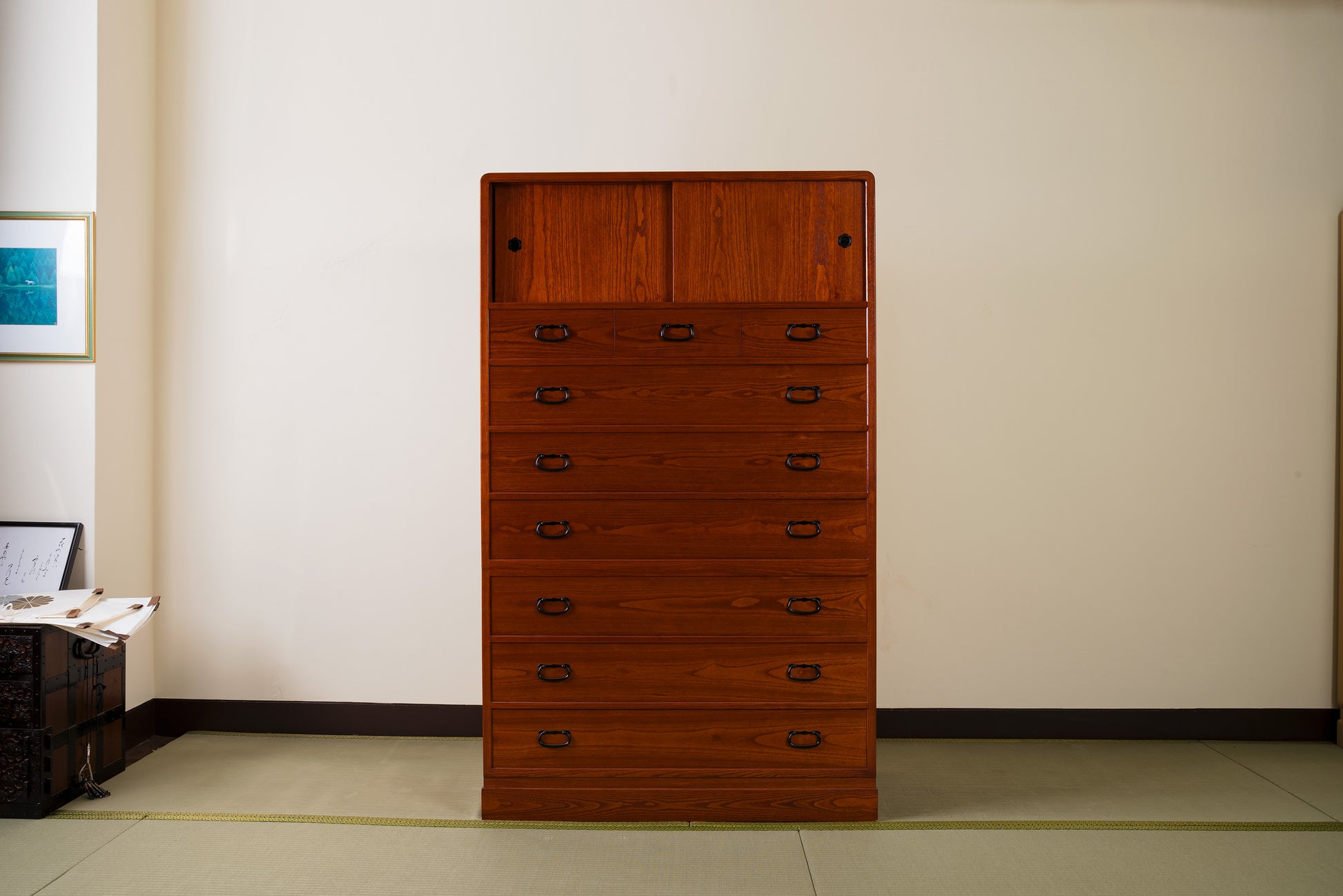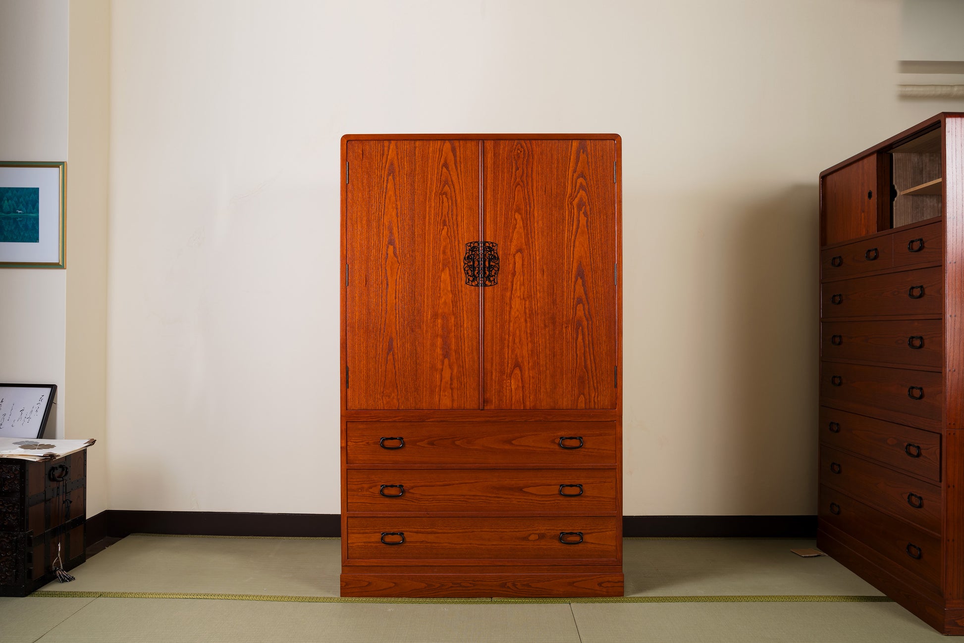 【アウトレット】桐の杢を使用した拭き漆仕上げの総桐夫婦箪笥 伝統工芸士三本和好作