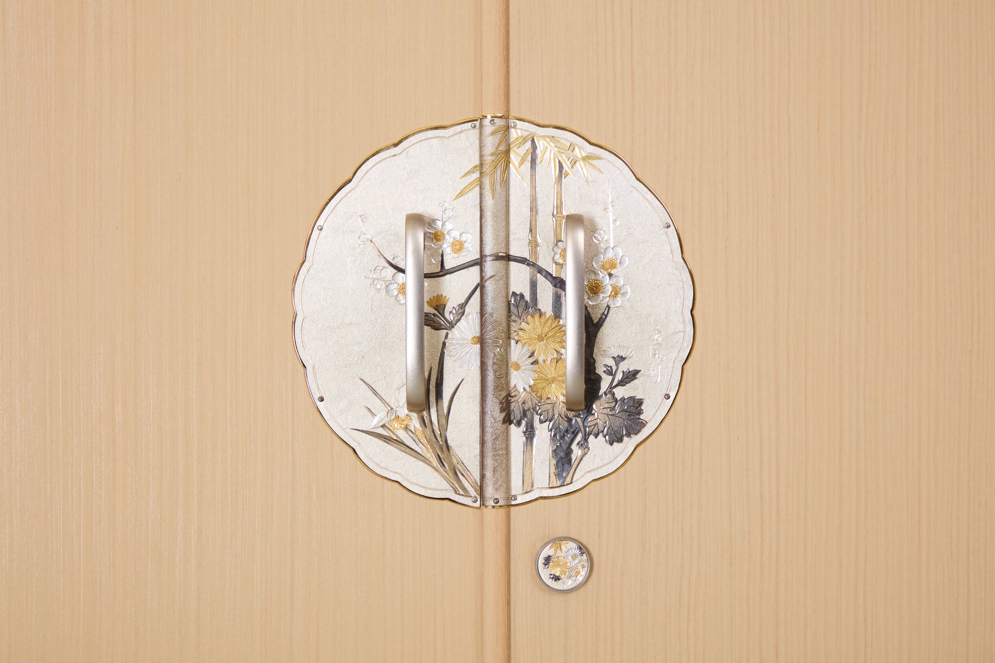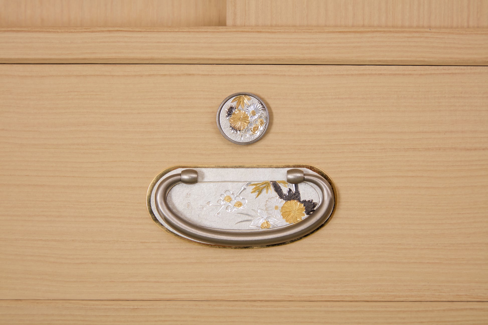 桐材は新潟県津南地方や東北地方の桐畑で自ら伐採し、天然乾燥を施した高品質な素材を使用。伝統工芸士 三本和好(プレート入り)が品質を保証します。