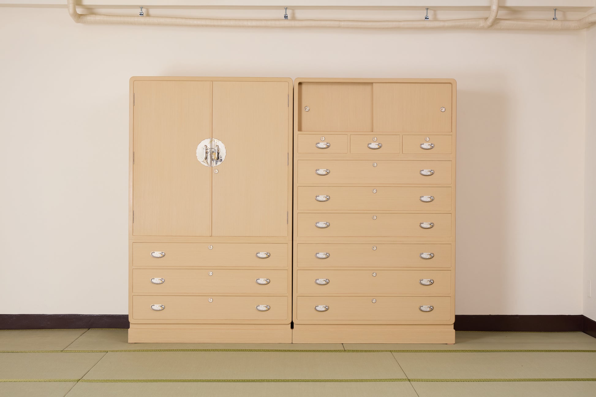総桐衣裳箪笥と七重箪笥を組み合わせた物を、夫婦箪笥と呼びます。もちろん、それぞれの単品もご注文いただけます。