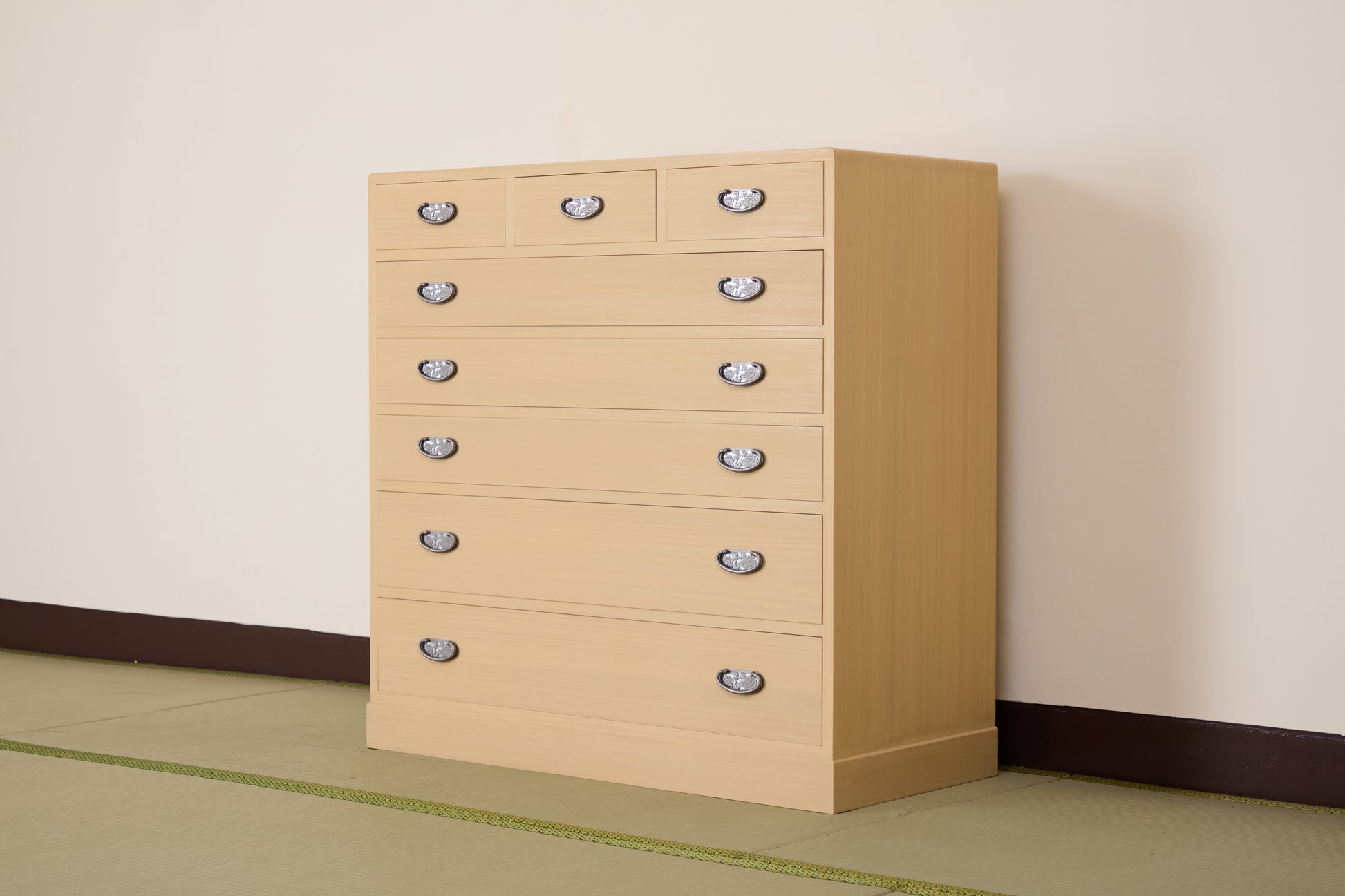 和服から洋服まで、幅広いアイテムの収納に最適な総桐整理たんす。美しさと実用性を兼ね備えた逸品を、ぜひお部屋に取り入れてみてください。お届けまでのお時間をご理解の上、ぜひご検討ください。